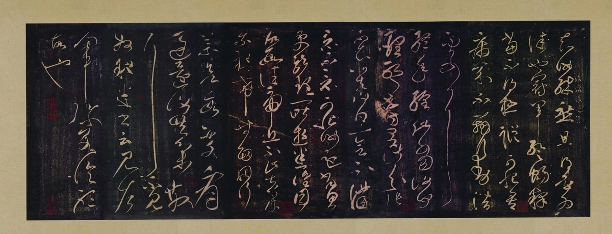 《张旭冠军帖草书》是唐代著名书法家张旭的代表作之一。此帖以狂草书写,笔法自由奔放,线条流畅而富有动感,展现了张旭独特的艺术风格和个人情感。整幅作品布局紧凑而不失疏朗之美,字与字之间既紧密相连又各自独立,充分体现了草书“连绵不断”的特点。通过观察可以发现,张旭在创作时注重气势的连贯性与节奏感的变化,使得观者仿佛能感受到书写过程中作者内心的激情澎湃。